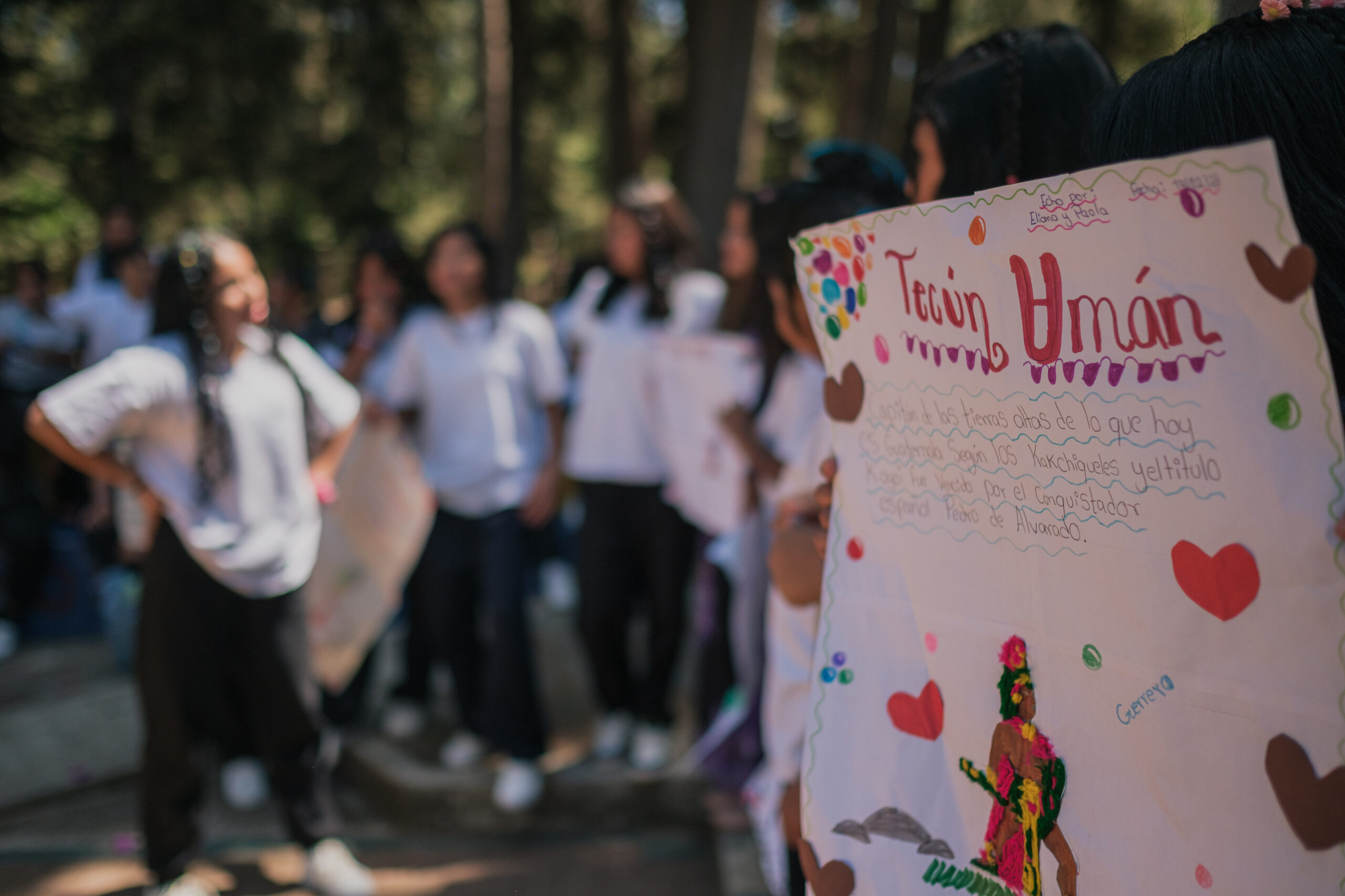 *Katherine, una de las adolescentes, se encargó de la elaboración de carteles y la estructura de las presentaciones. Para ella, la experiencia fue profundamente enriquecedora: “Hice los carteles, estructuré los bailes y las palabras de agradecimiento. Fue agradable hablar de la historia de Tecún Umán y de la marimba; es una experiencia que siempre llevaré en mi corazón, porque conocer sobre el primer héroe de nuestra historia fue muy impresionante”, detalló tras su exposición.