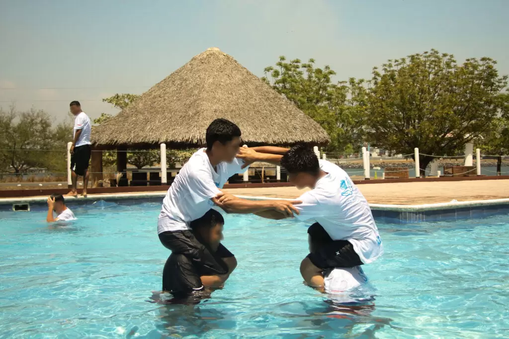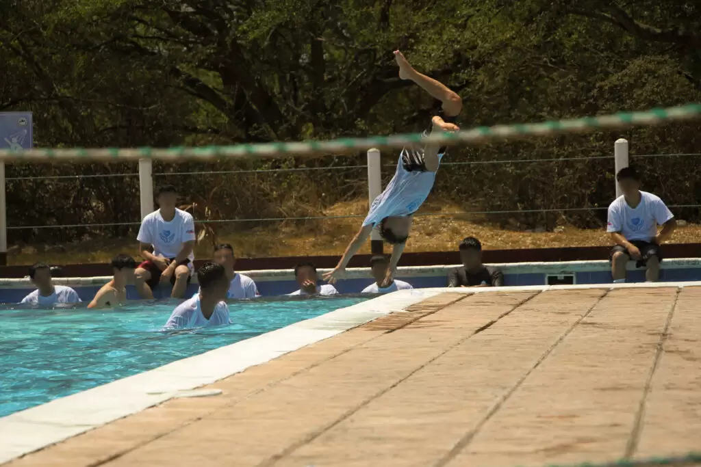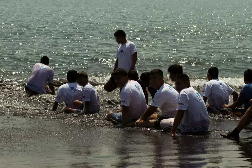 La jornada tuvo lugar en la Base Naval del Pacífico, gracias a una coordinación estratégica con el Ministerio de la Defensa, para que los adolescentes y jóvenes participaran en diversos juegos acuáticos, nadaron en el mar y disfrutaron de la piscina, además de organizar un encuentro de fútbol en la playa.